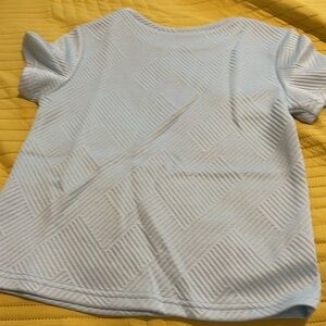 Elevate your casual wardrobe with this light blue textured short sleeve tee. Perfect for everyday wear, this top combines comfort and style effortlessly.
