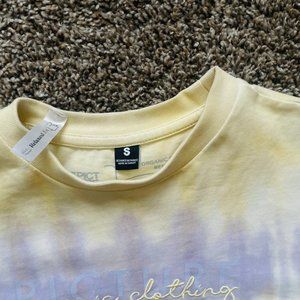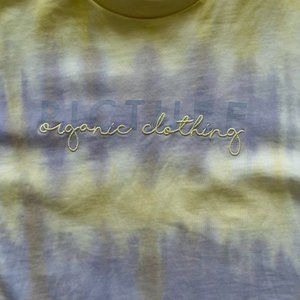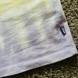 Embrace a casual look with this stylish tie-dye tee. Featuring a blend of soft purple and yellow hues, this top is perfect for everyday wear.