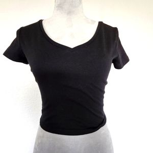 Women's Short Sleeve V Neck Cropped T Shirt Wild Fable Size Small