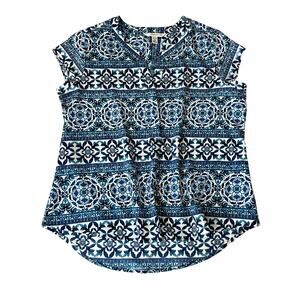 This Croft & Barrow top is a stylish addition to your wardrobe! The blue patterned design is eye-catching and perfect for any casual occasion.