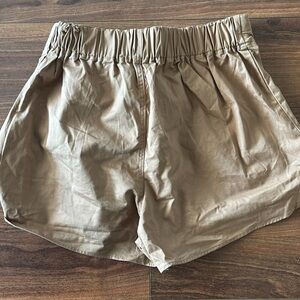 High waisted shorts with back elastic waistband and front pleated detail. Front side pockets.