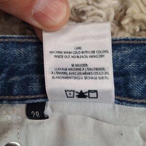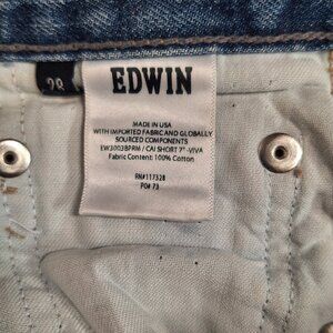 The product is a pair of women's shorts from the brand Edwin in a size 28. These blue cut-off style shorts are designed for a regular fit and are perfect for a casual and stylish look. Made for women, these shorts are a versatile and trendy addition to any wardrobe, suitable for various occasions and weather conditions.