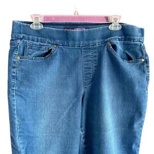 These pull-up style pedal pusher cut offs from Gloria Vanderbilt are crafted with stretchy fabric for a comfortable fit, featuring a no-button or zipper design.