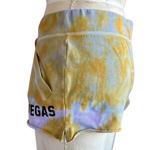 These size small shorts from Victoria's Secret have been upcycled with a tie-dye effect, featuring a Vegas screen print on the front for added flair. Perfect for a unique and stylish look, they offer both comfort and fashion.