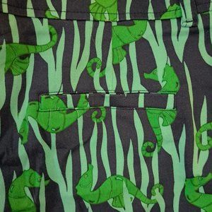 Seahorse print, navy blue, teal and green