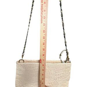 Women's Shoulder Bag Beige Crocodile Embossed Genuine Leather Chain Strap Italy