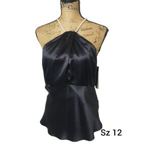 Women's Silk Halter 12 Black Sleeveless Blouse Pearl String Dressy Shell NWT