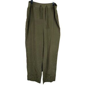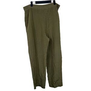 Womens Silk Olive Green Elastic Waist Pants Small Oversized Baggy 90s Vintage
