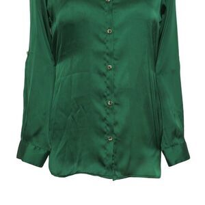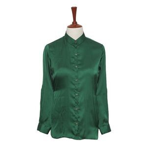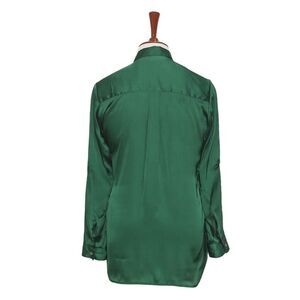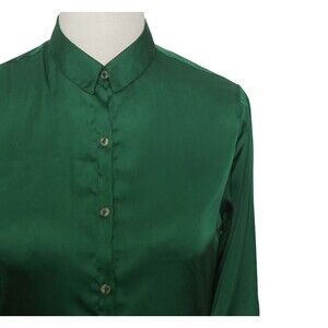Womens Silk Shirt Button Up Green Lightweight Dress Casual Summer Top Medium