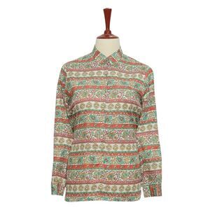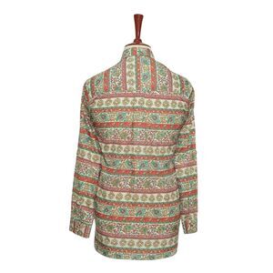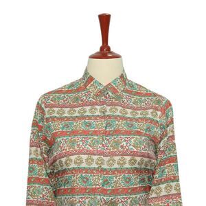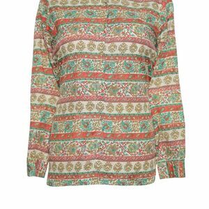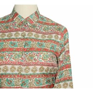 Womens Silky Blouse Multicolor Floral Paisley Shirt Button Up Dressy Top Medium