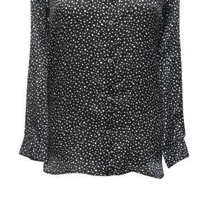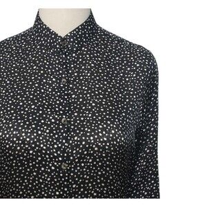 Womens Silky Satin Shirt Black Polka Dot Blouse Button Up Dressy Top Medium Work