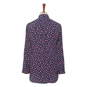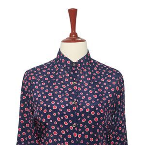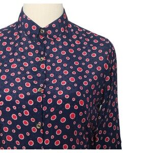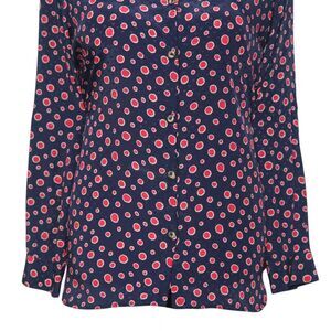 Womens Silky Satin Shirt Blue Red Polka Dot Blouse Button Up Dressy Top Medium