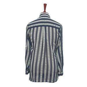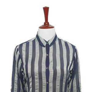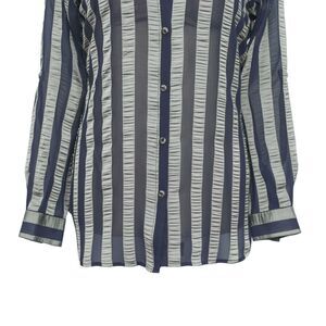 Womens Silky Shirt Button Up Blue Gray Striped Chiffon Dress Casual Party Medium