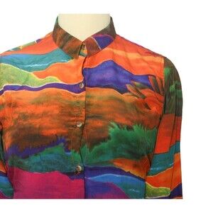 Womens Silky Shirt Button Up Multicolor Abstract Graphic Casual Party Tunic M