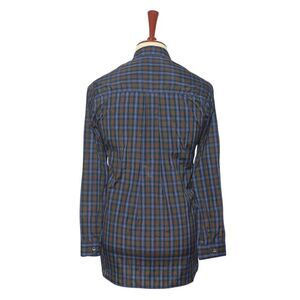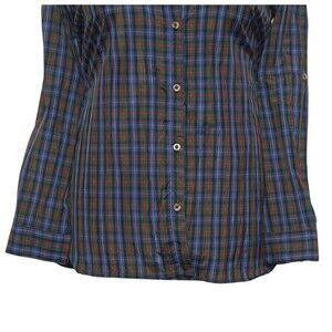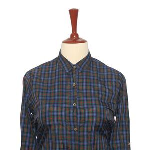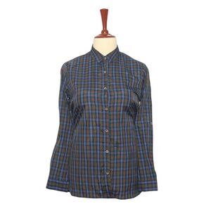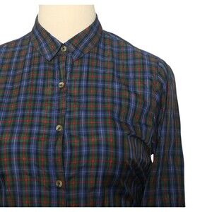 Womens Silky Shirt Green Blue Red Tartan Plaid Blouse Button Up Dress Top Medium