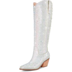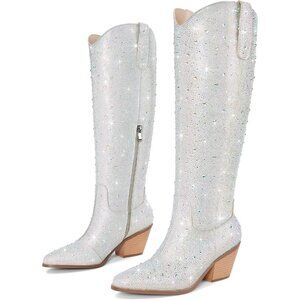 FASHION STYLE Sparkly rhinestone add a touch of glamour and sparkle to these western boots. These mid-calf boots offers a versatile style that pairs well with jeans, skirts, or dresses.