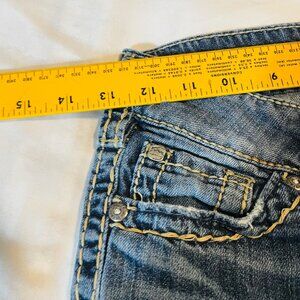These Silver brand Capris offer a classic silhouette with distinctive vintage-inspired detailing. Crafted with precision, the denim features intricate stitching and strategic fading that creates a lived-in aesthetic. Designed for versatility and comfort, these jeans transition seamlessly from casual daytime settings to evening environments.