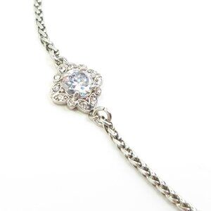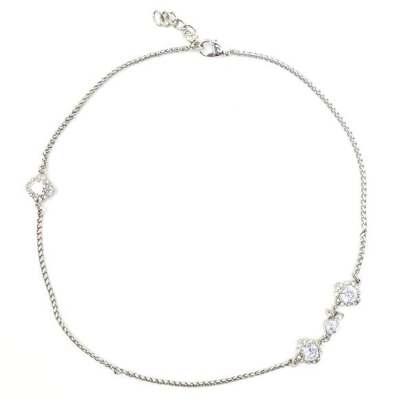 This is an GUC Womens Silver Chain and Rhinestone Necklace Womens Silver Chain and Rhinestone Necklace. This beautiful necklace features a dainty silver toned chain, and super sparkly crystal rhinestone details.