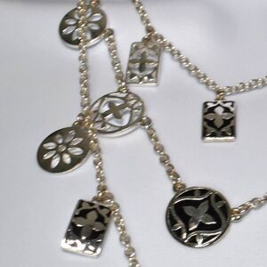 Womens Silver Charm Pendant Multi Chain Necklace Flower Charms