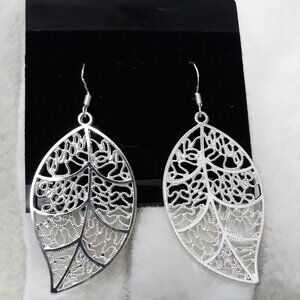 Women's Silver Filigree Leaf Dangle Earrings NEW
