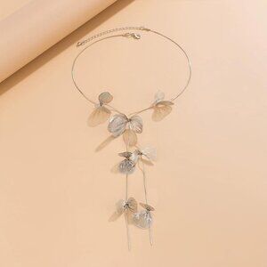 Women's Silver Ginkgo Leaves Choker Statement Long Tassel Beachy Party Necklace