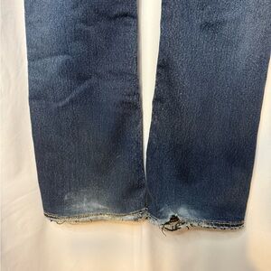 These Aiko jeans feature a classic straight leg design in a rich blue hue, offering a timeless and versatile look. The denim is crafted to provide a comfortable fit with a subtle vintage-inspired finish, perfect for everyday wear.