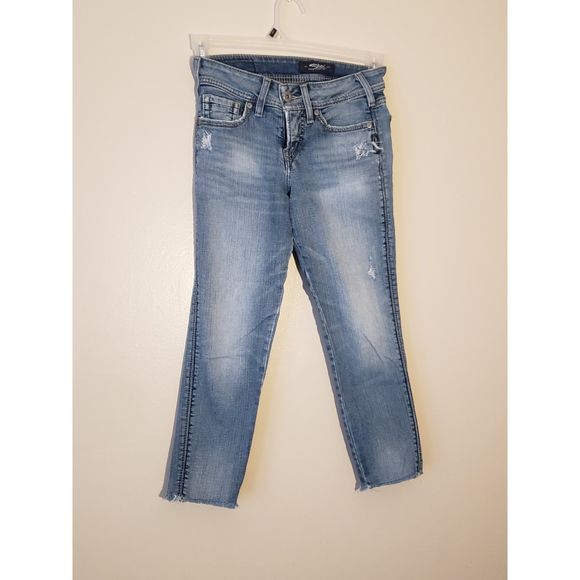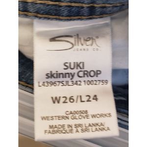 Ladies, rock the scene with Women's Silver Jeans Co. Suki Skinny Crop in a sweet W26/L24, the epitome of chic comfort. This light blue dream is your style anthem, seamlessly blending sass and class. From sunrise to sunset, these jeans are your ticket to turning heads and making memories. Elevate your strut, darling!