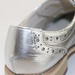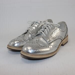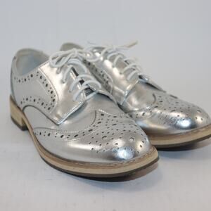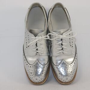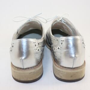 Women’s Silver Metallic Oxford Wingtip Brogue Shoes Size 9 Lace-Up Dress Flats