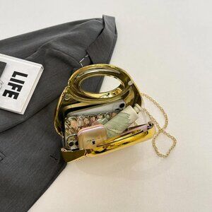 PREMIUM CRAFTSMANSHIP - This moon-shaped acrylic clutch bag is crafted from scratch-resistant acrylic with upgraded sturdy metal hardware, reinforced stitching, and durable polyester lining. The acrylic clutch purse outperforms similar products in durability. Its sleek, innovative design adds a unique flair, making it a standout metallic evening handbag for any occasion.