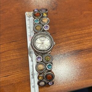 Elevate your style with the Women's Silver Multi-Color Bracelet Watch. Featuring a stunning array of colorful stones, this watch adds a vibrant touch to any outfit. Perfect for any occasion.