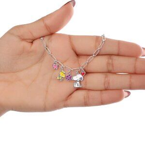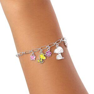 Women’s Silver Plated Brass Charm Bracelet Snoopy Heart Flower Enamel