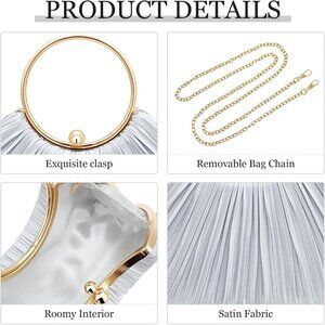 Women's Silver Pleated Evening Party Prom Wedding Dinner Luxury Clutch Bag