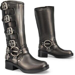 ⚡Women's Silver Polyurethane Knee High Riding Side Zipper Chunky Heel Boots