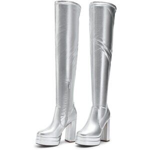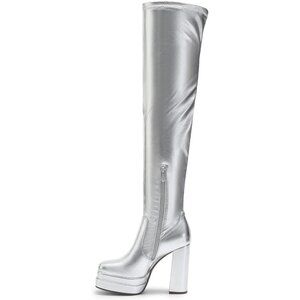 Women's Silver Polyurethane (PU) Square Toe Over The Knee Thigh High Boots