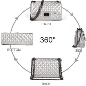 Women’s Silver Quilted Crossbody Flap Bag Chain Strap