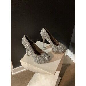 Women’s Silver Rhinestone High Heel Pumps Platform Stiletto Shoes Size 10 Party