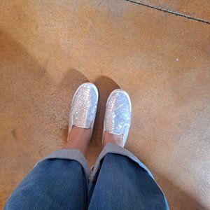 Women's Silver Sequin Bling Slip on Shoe