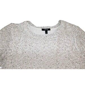 Womens Silver Sequined Pullover Top Asymetrical Hem size Medium JH856