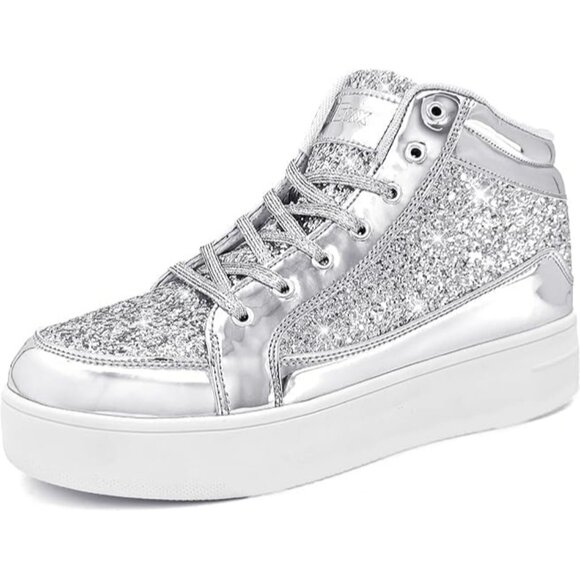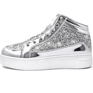 Women's Silver Shiny Glitter Sequin Shoes High Top Sneakers Fashion Bling