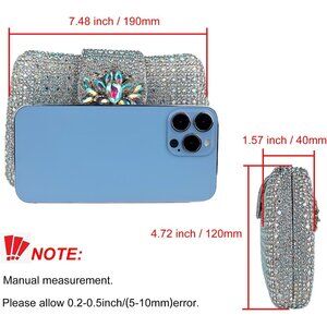 ◆Size & Capacity.◆ Dimensions: L7.48 x H4.72 x W1.57 inches, about 19 x 12 x 4 cm.Handle length: 7.87inch (about 20cm). This women's evening bag can hold your mobile phone, lipstick, keys, foundation case, small mirror, other small things.