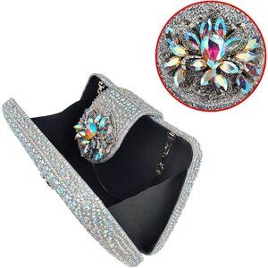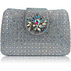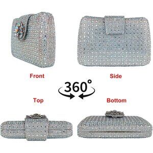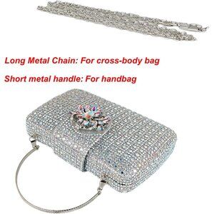 Women's Silver Sparkly Rhinestone Unique Evening Floral Clutch Shoulder Handbag
