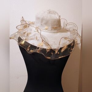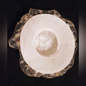 This would be great for a Halloween costume. Silver accented (White Witch) Hat not (White) Witch Hat lol. Beautiful off white crochet hat with ribbon that has silver and gold colored feathers.