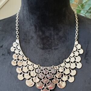 Womens SilverTone Bold Bib Layered Enamel Statement Necklace with Lobster Clasp.