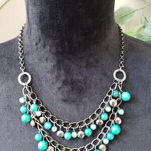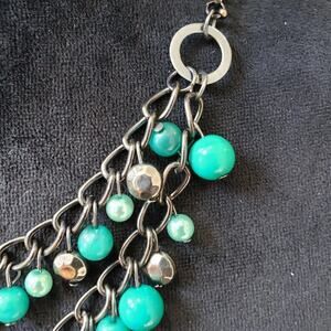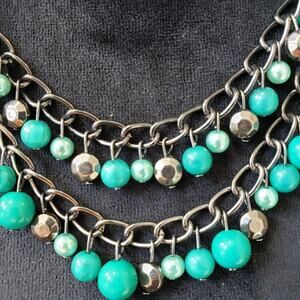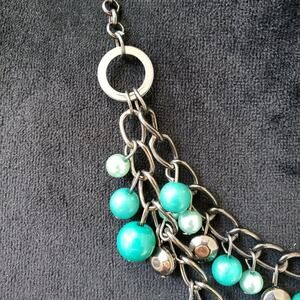 Womens Silver Tone Chain Green Beaded Charm Necklace Jewelry with Lobster Clasp.