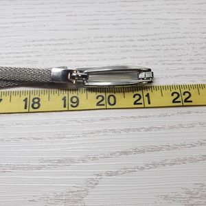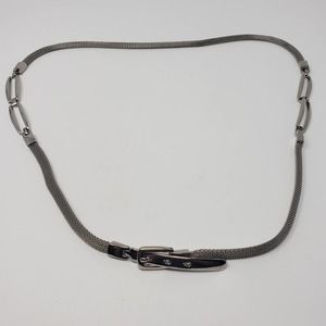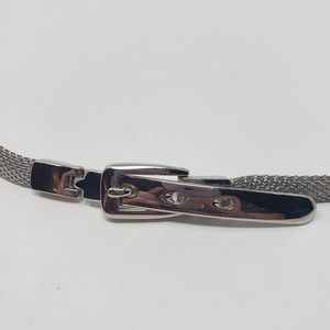 Women's silver tone metal mesh chain belt, faux buckle closure, approximately 21 inches. Vintage Retro Accessory