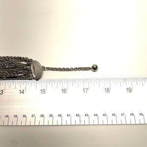 This Women's Silver Tone Multi Layer Bib Chain Necklace - 17in is a trendy accessory perfect for every woman's wardrobe. Crafted from various metals, it showcases a multi-layered design for a chic look. The lobster claw clasp ensures both security and ease of wear. This necklace is in excellent used conditions with no dents, broken elements, or discoloration. Please review the accompanying images and verify the measurements to ensure a proper fit.