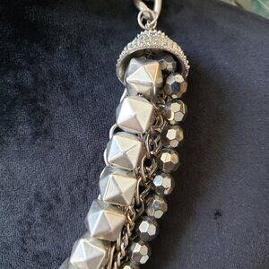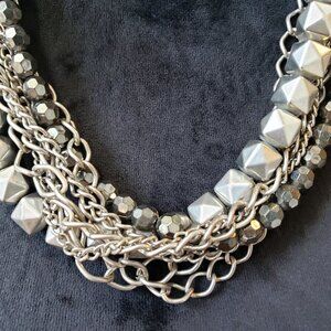 Womens Silver Tone Multiple Strand Chain & Beaded Necklace with Lobster Clasp.