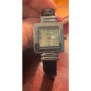 Women's Silver Tone Novelle Watch, Bangle Bracelet with MOP Face