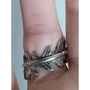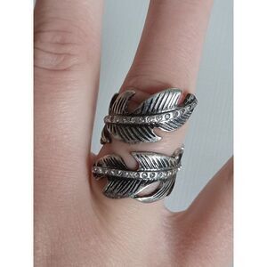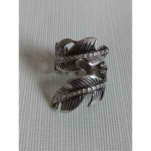 Women's Silver Toned Rhinestone Encrusted Wrap Around Feather Statement Ring