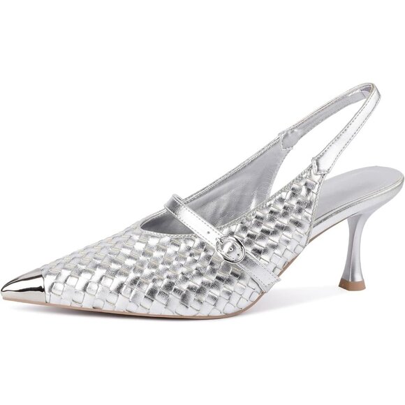 Elegant Design: Women's Woven Pump Pointed Toe High Heel Buckle Strap Slingback Heels feature a unique woven texture that adds a touch of sophistication to any outfit Whether you're headed to the office or a special event these shoes are the perfect choice
